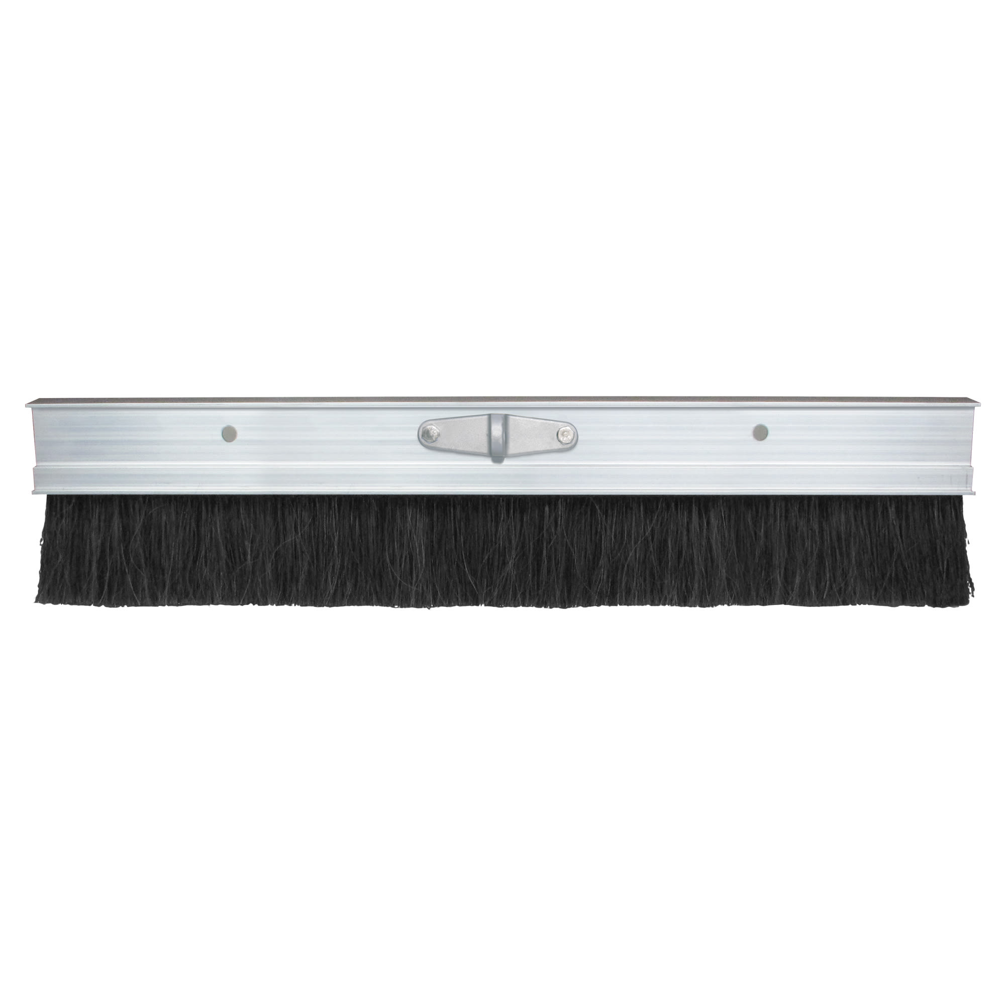 Brush down new concrete after floating with this lightweight aluminum broom. Popular for finishing sidewalks and driveways or wherever a finish with some traction is desired. The 3-1/8" medium/general purpose black poly bristles are epoxy set for long wear and durability. The 60" extruded aluminum provides a sturdy long-wearing base for the bristles. A clevis handle bracket is included and attaches to the broom. Use it with clevis style handles, or attach a threaded or button bull float handle adapter for more versatility and a longer reach across the cement slab. Add Kraft Tool's Flipper Tilt Bracket™ (CC496) can be attached to maximize your range of motion, sold separately. Hang holes along the top provide easy storage for your broom.