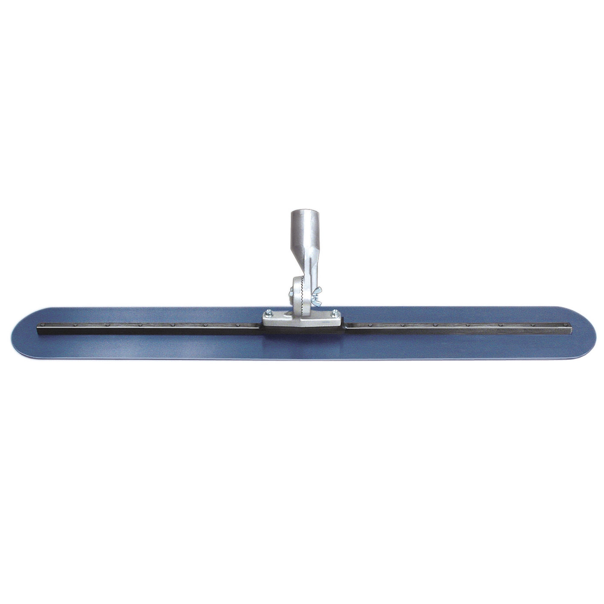 This 4' fresno trowel is made with high quality, flexible blue steel for a perfect finish. Use this quality fresno to finish concrete to a smooth, hard surface. Round ends on the 5" blade eliminate gouging of concrete for a smooth finish. A 45" long 1/2" square steel mounting is centered on the 48" blade to help keep the trowel flat. A strong cast aluminum bracket is attached to the fresno. Uniquely designed bracket has teeth to keep handle at set angle without slippage. Single tilt bracket moves handle 180 degrees for back and forth movements. Use with threaded bull float handle. Other 2-hole fresno brackets can be used, if desired. Attach one or more groover bits (sold separately) to turn this tool into a groover for more versatility.